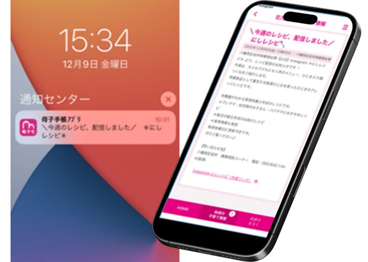 母子手帳アプリ「母子モ」から“献立ヒントが届く”仕組み。